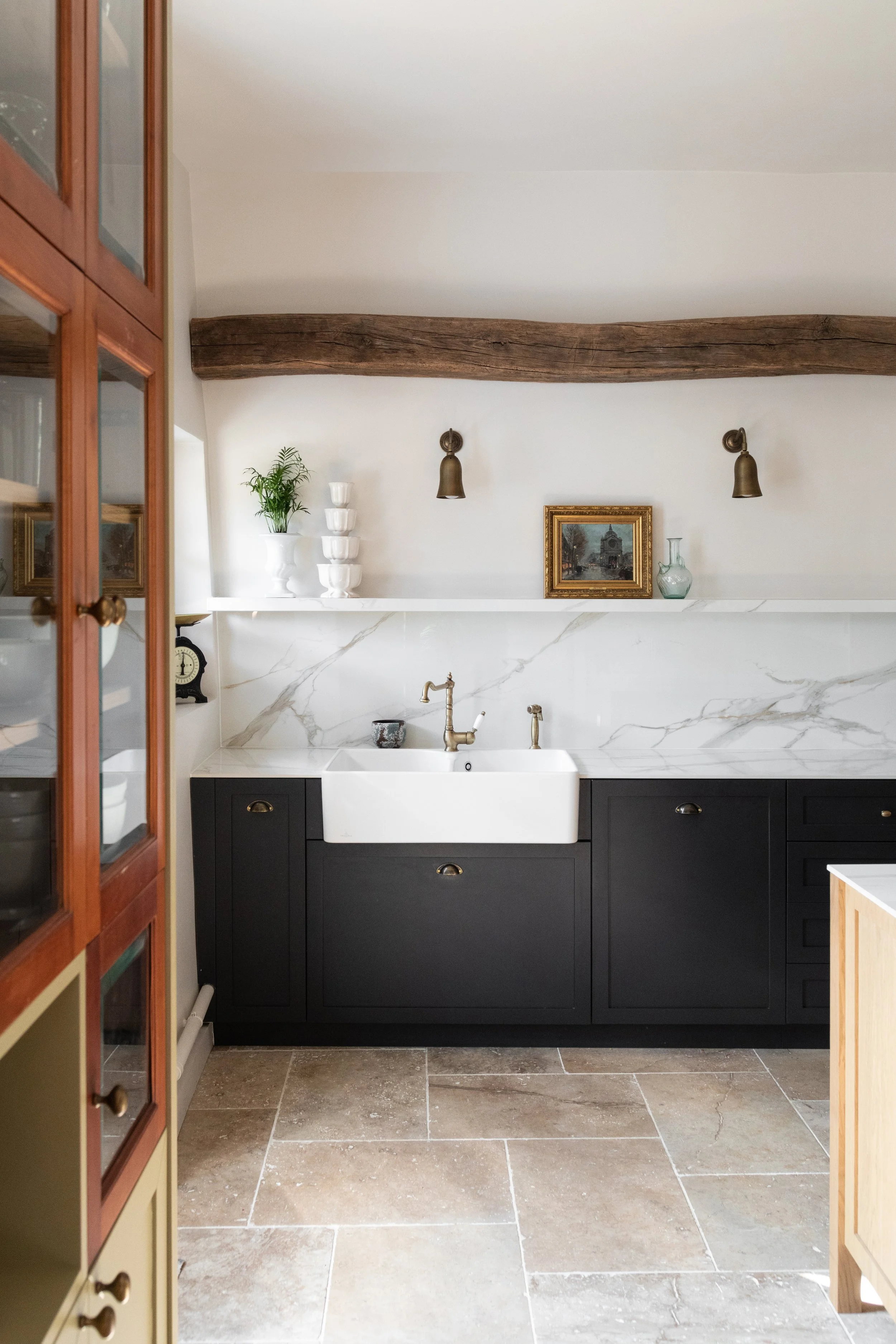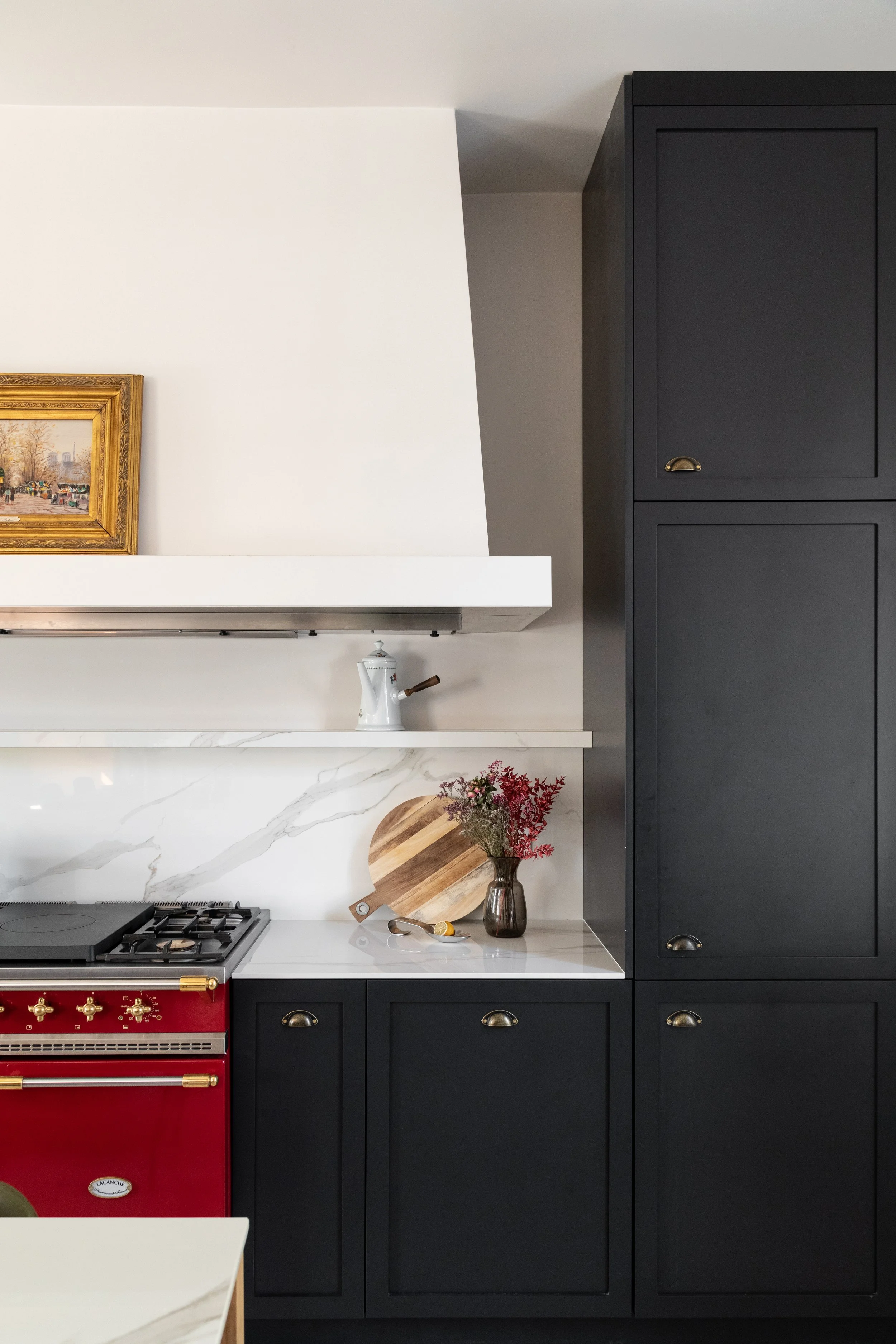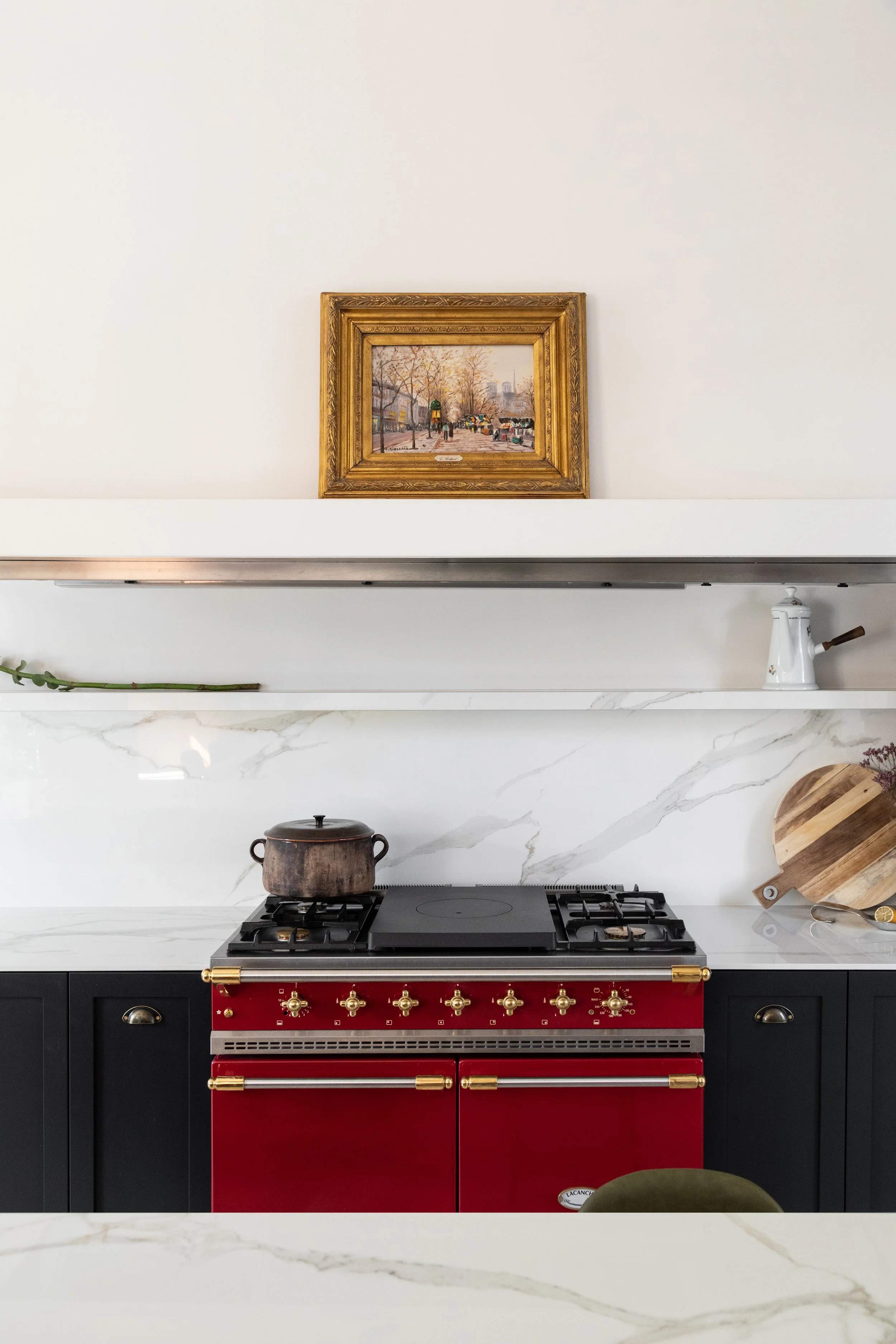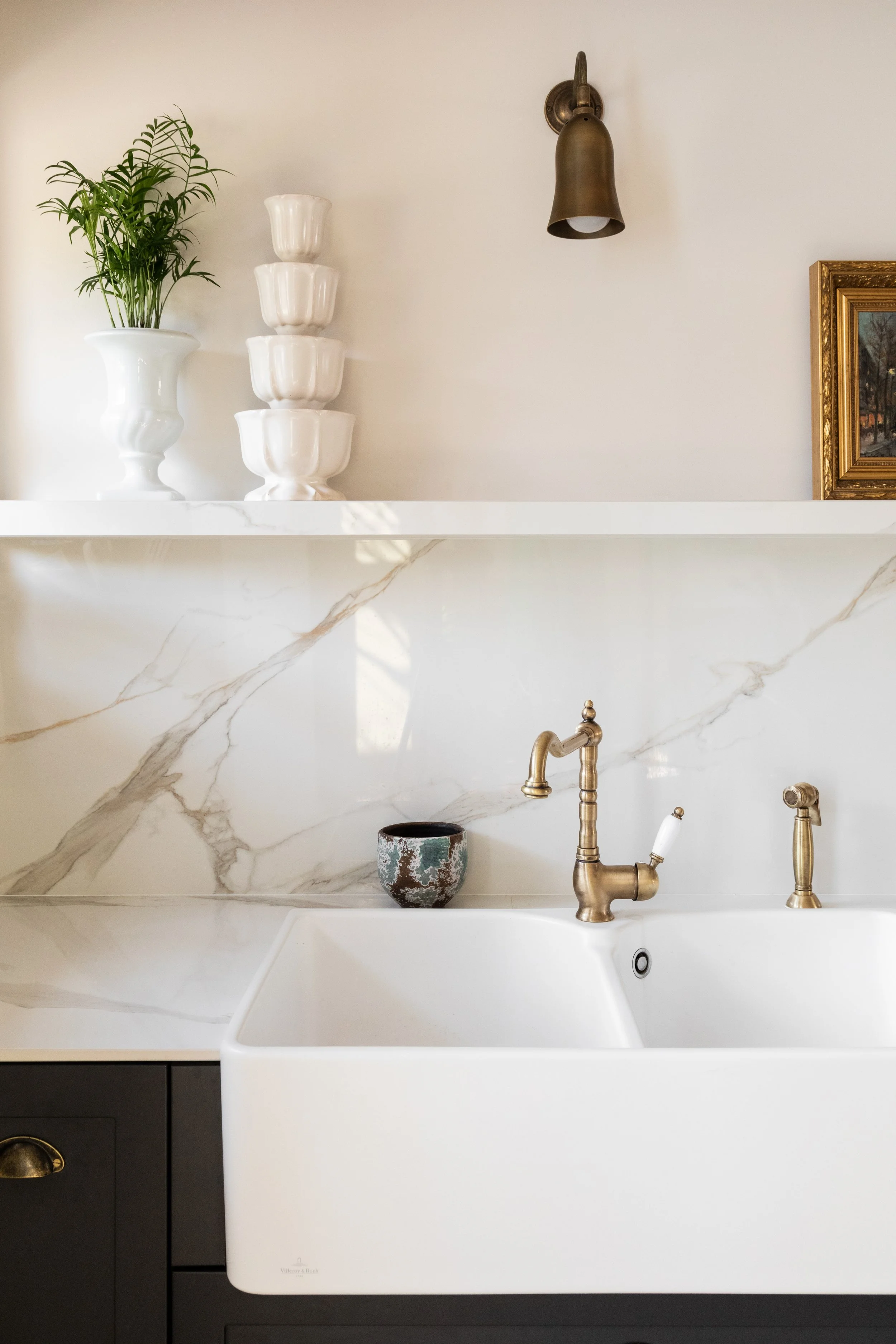 Ce projet a notamment été déterminé par la volonté de conserver un maximum de matériaux d’origine qui contribuaient au charme de la maison lors de son acquisition. Ces derniers, comme par exemple la tomette ou la faïence de la cuisine, ont été restaurés et réutilisés dans les sanitaires du 1er étage.