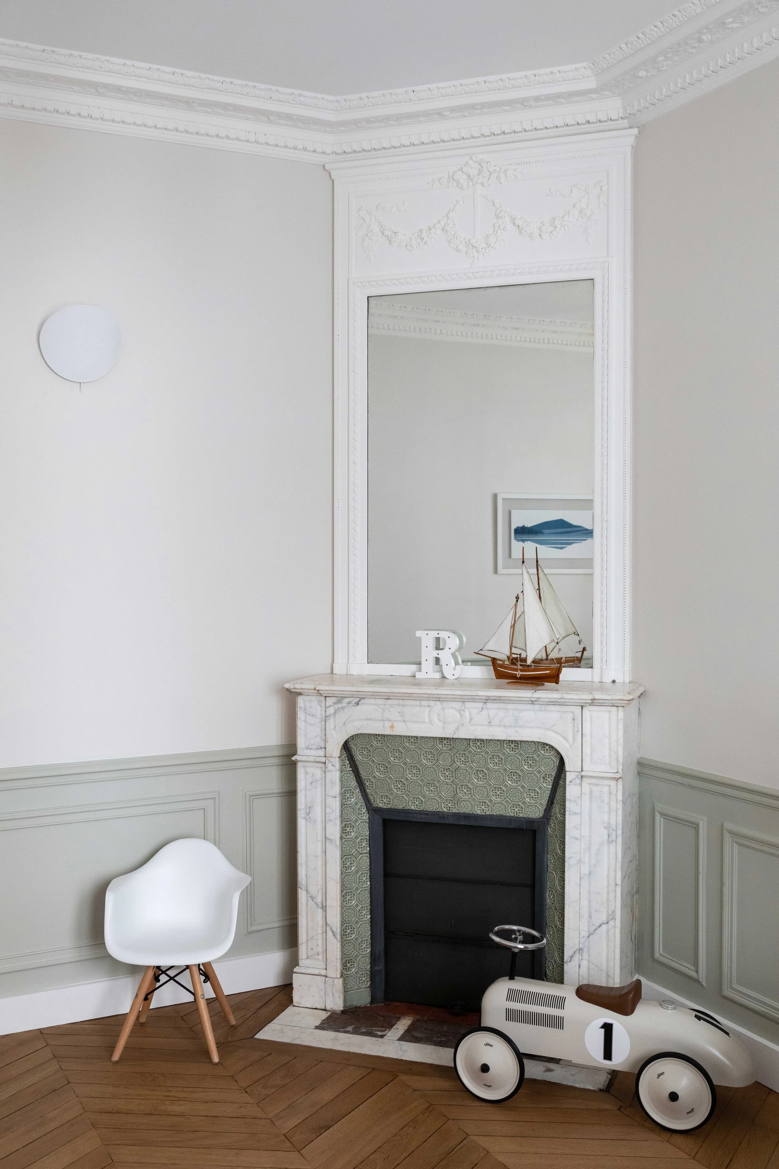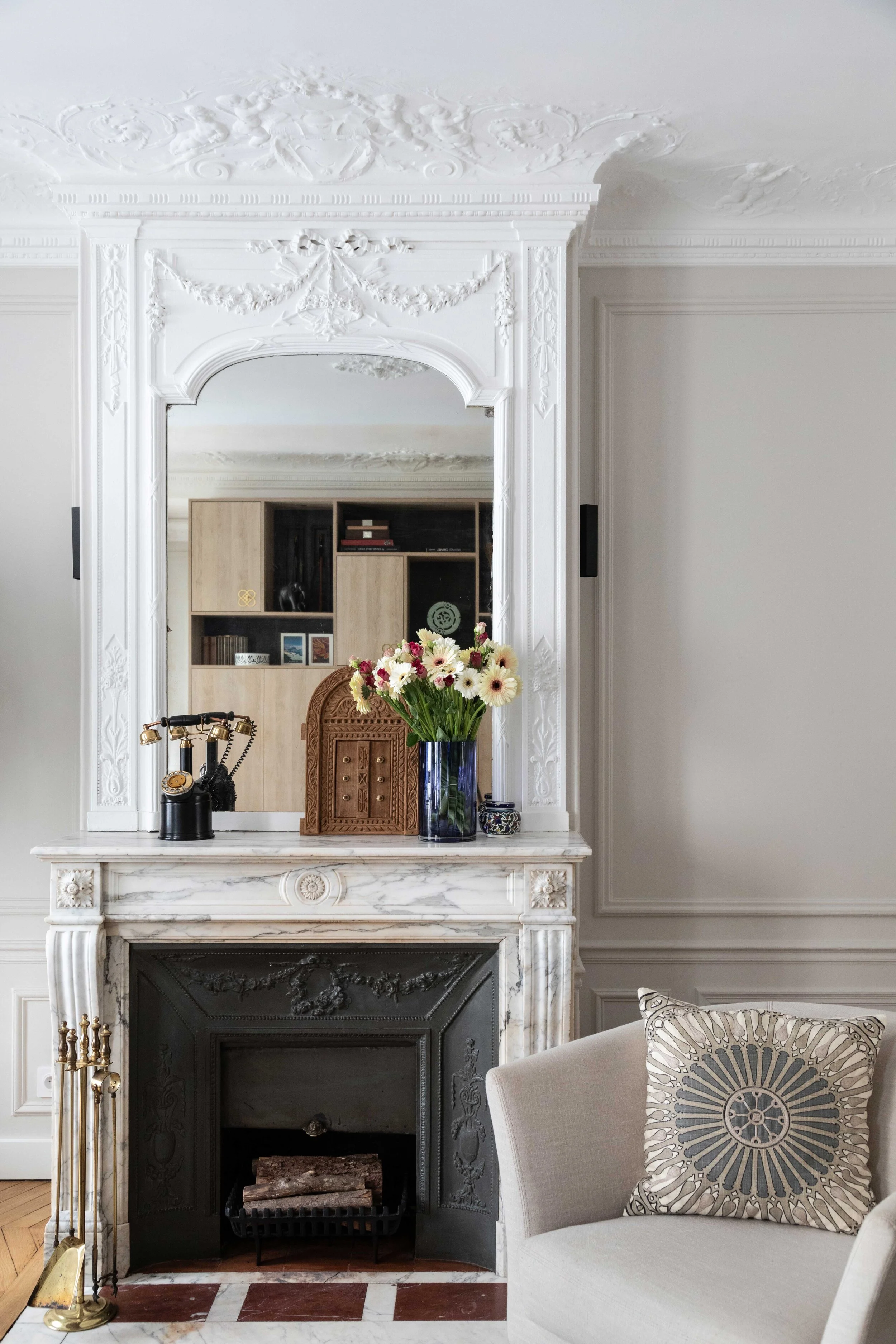 Un bijou haussmannien de 154 m2 laissé à l’abandon depuis un demi-siècle, mais riche en potentiel, comme son parquet en pointe de Hongrie, ses belles cheminées en marbre, ses corniches en relief et ses vitraux courbés signés Champigneulle.